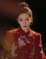周也轻抚红色纱裙,姿态优雅如古典画卷,眼中闪烁着对新年的无限憧憬