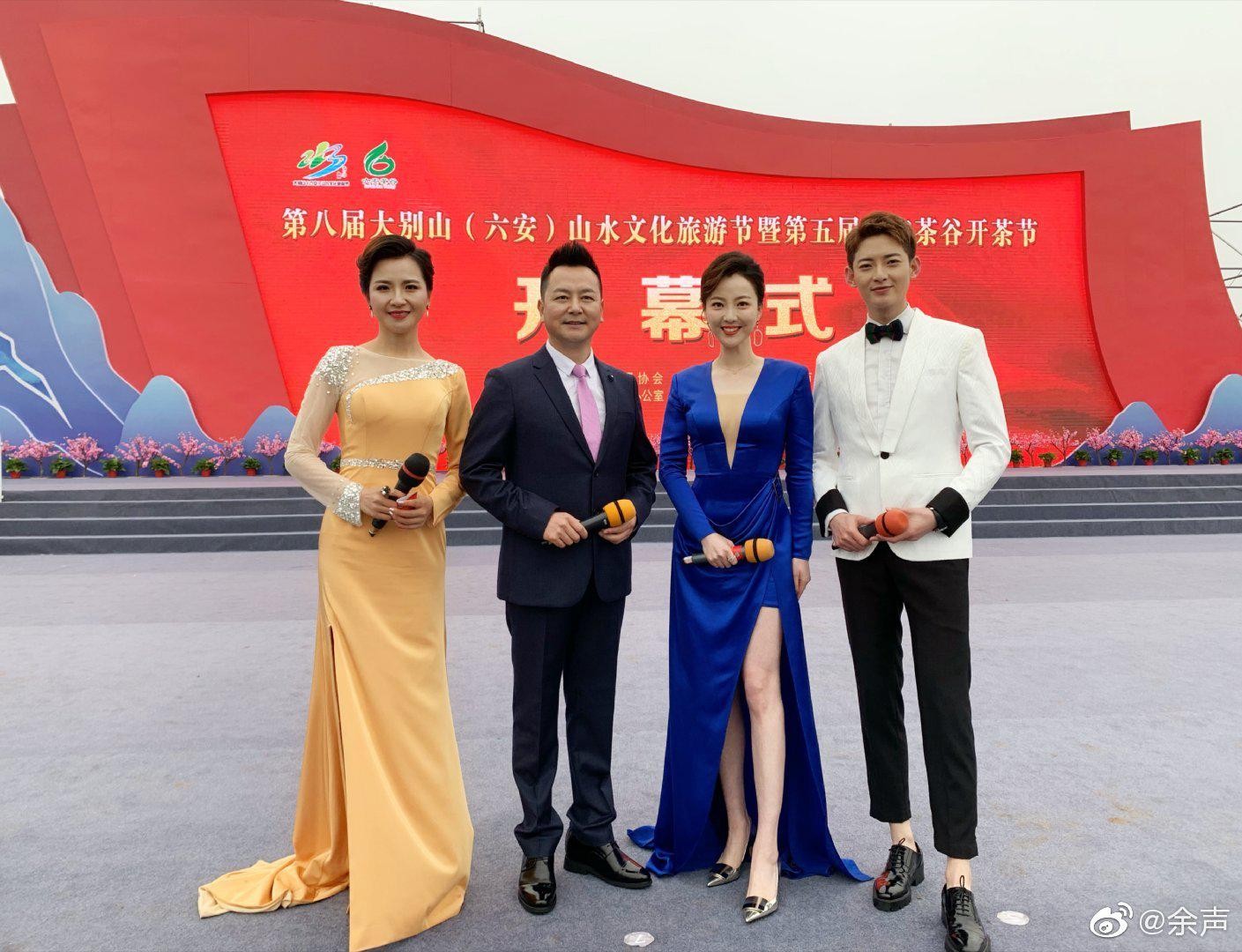 余声与现场嘉宾交谈,裙裾轻曳,姿态从容尽显主持风范